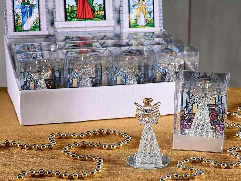 Glazen engel met spiegelvoet met gouden randen